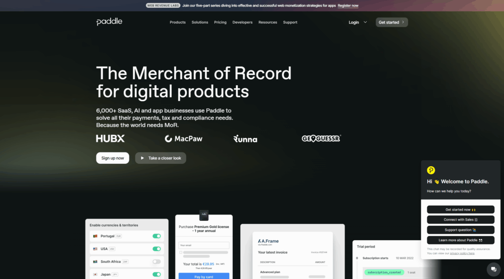 Paddle成立于2012年,总部在英国伦敦,是专门做虚拟产品和SaaS收款的支付平台。它的模式和Stripe不同,属于 Merchant of Record(MoR) 在这种模式下,Paddle 不是帮你收款,而是直接作为卖家向客户开票,再把钱结算给你,客户在月结单上看到的商家名是Paddle。这个模式的优点是它帮你搞定了税务、合规和风控,缺点是费率会高一些。很多国外的SaaS大厂(包括Framer、MacPaw)都是用 Paddle 做全球收款。
