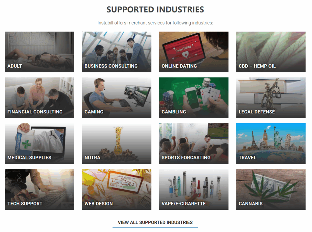 Instabill成立于2001年的美国公司,老牌高风险支付通道。它支持的行业非常宽泛,从成人网站到营养补充品,再到外汇交易平台,都有案例。